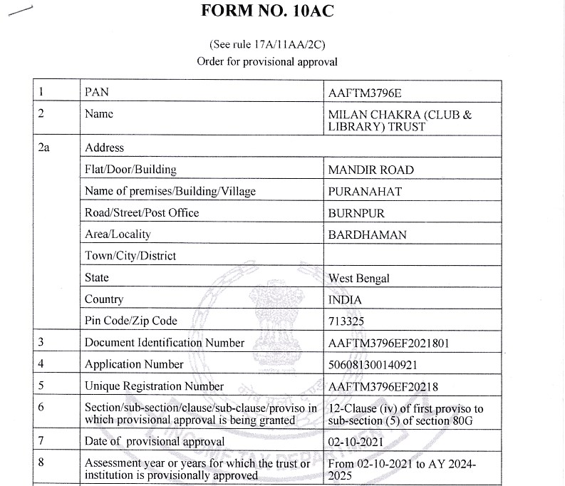 MILAN CHAKRA (CLUB & LIBRARY) TRUST