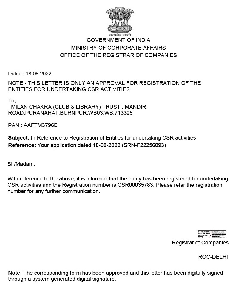 Milan Chakra started as a small social group with a library and later grew into Milan Chakra Club & Library with added sports and cultural activities. After 50 years, it was restructured as Milan Chakra (Club & Library) Trust in November 2017 for legal protection and wider social outreach.